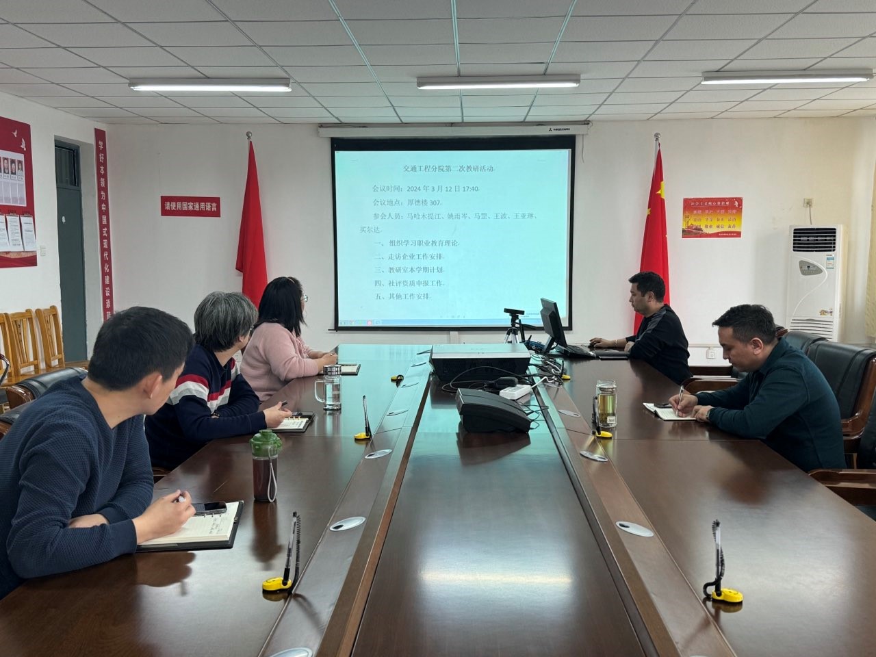 “学而不思则罔,思而不学则殆”。为促进分院教研工作的顺利进行,准确把握本学教研工作重点与方向,3月12日下午,分别开展新学期第一次教研活动。交通工程分院院长马哈木提江·米吉提,分院教研室主任马罡、王波、王亚琳,辅导员买尔达·库尔班江、教学秘书姚雨岑,展开了深入交流与探讨。