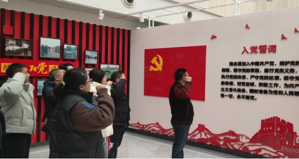 随后,全体党员、教师前往独山子参观了独山子区党群活动中心。在党群活动中心教师的引导下,大家通过文字资料、照片缩影了解独山子的建制沿革、党史珍闻,让党员、老师们更加直观感受独山子巨大的变化和发展成就;参观1953时空穿越馆,体验编草鞋、唱红歌,学习革命先烈的英雄事迹、艰苦奋斗的革命精神;在红色记忆长廊交通工程分院党支部书记带领全体党员重温入党誓词。